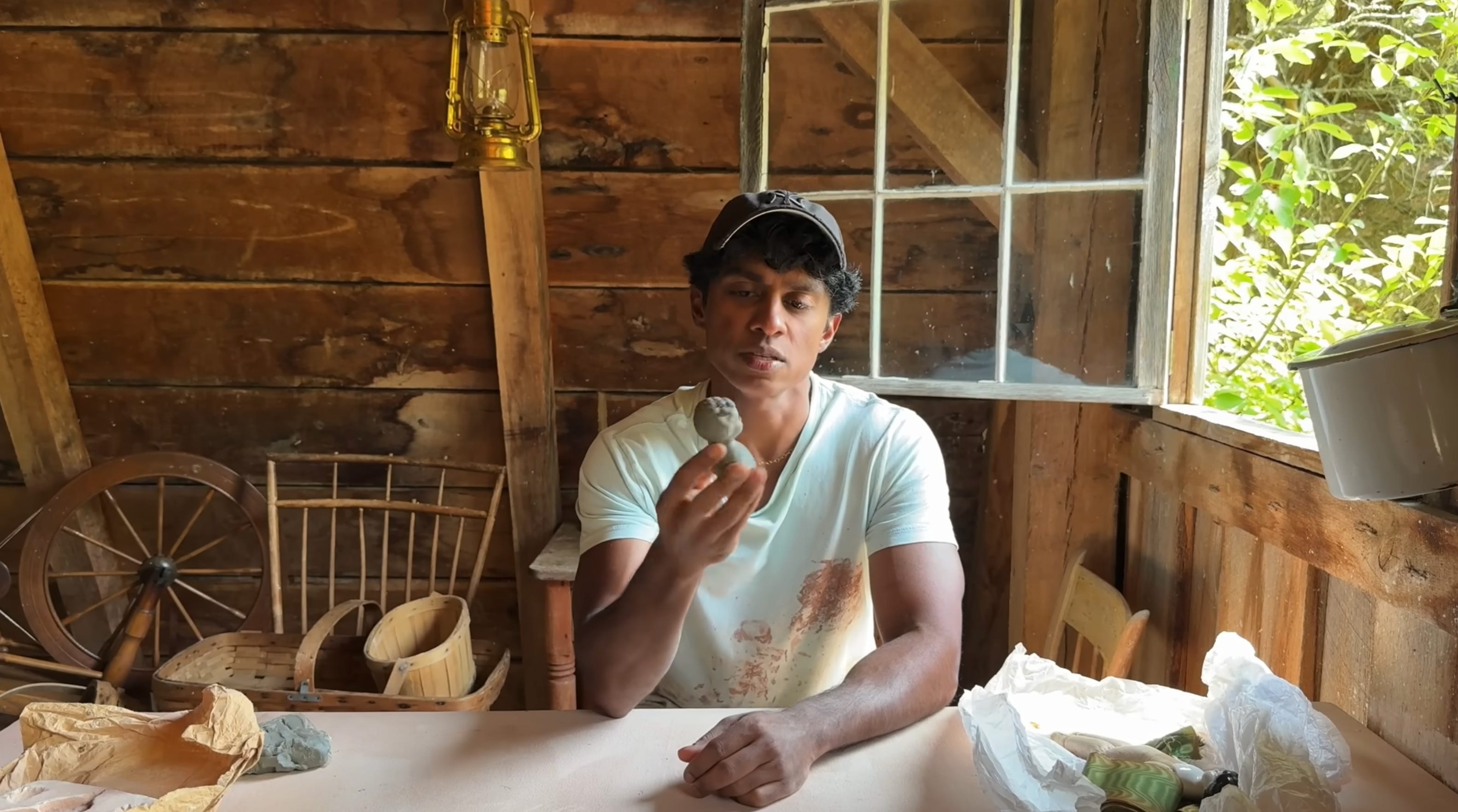 The video I watched today starts with him talking about how he’s making a doll’s head out of Plasticine so he can make a plaster mold of it that he’ll use to add decor to flower pots he makes. (He first did this with a sculpture he made based on a Neoclassical man’s head on a building in Munich; I mean, who does this?)
